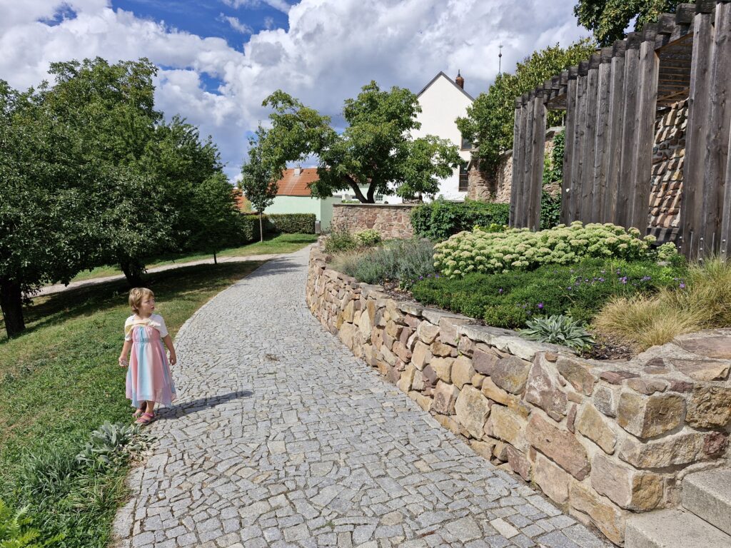 Najdete tu také menší hřiště, možná oceníte možnost napustit si pitnou vodu a v září si děti s chutí pochutnají i na spadaných jablíčkách.