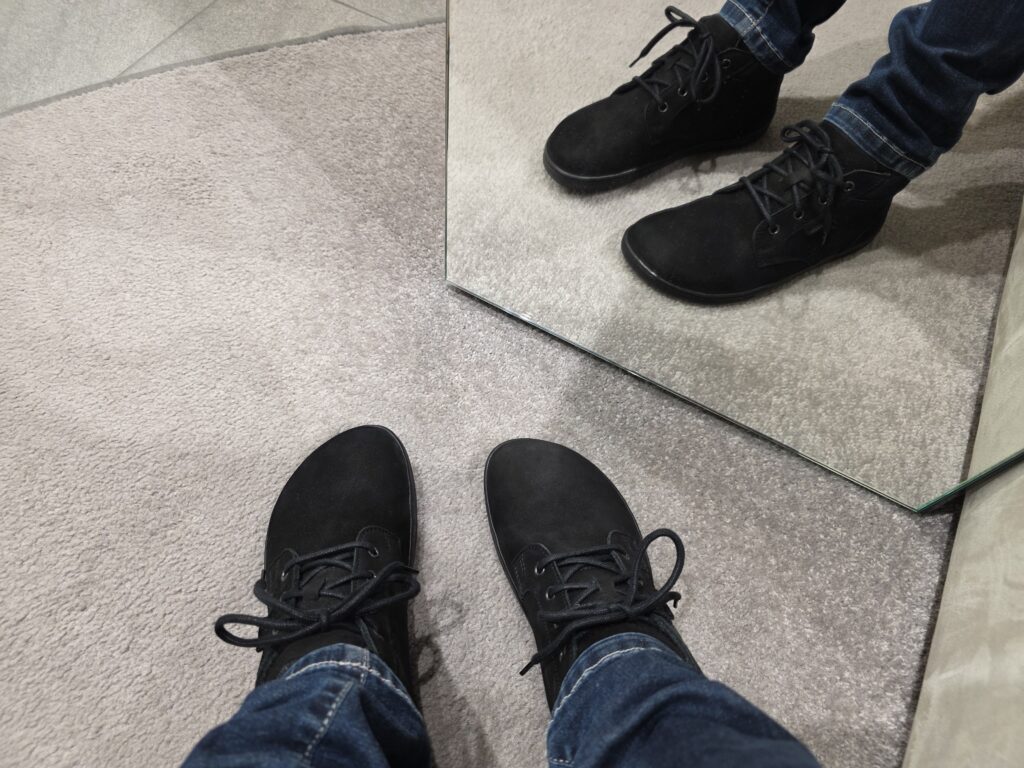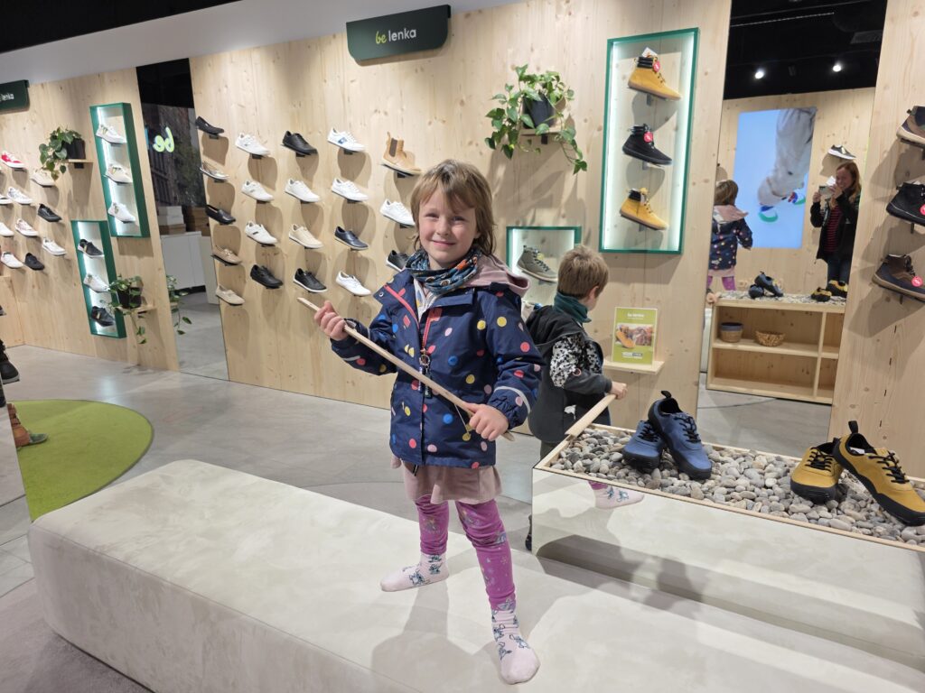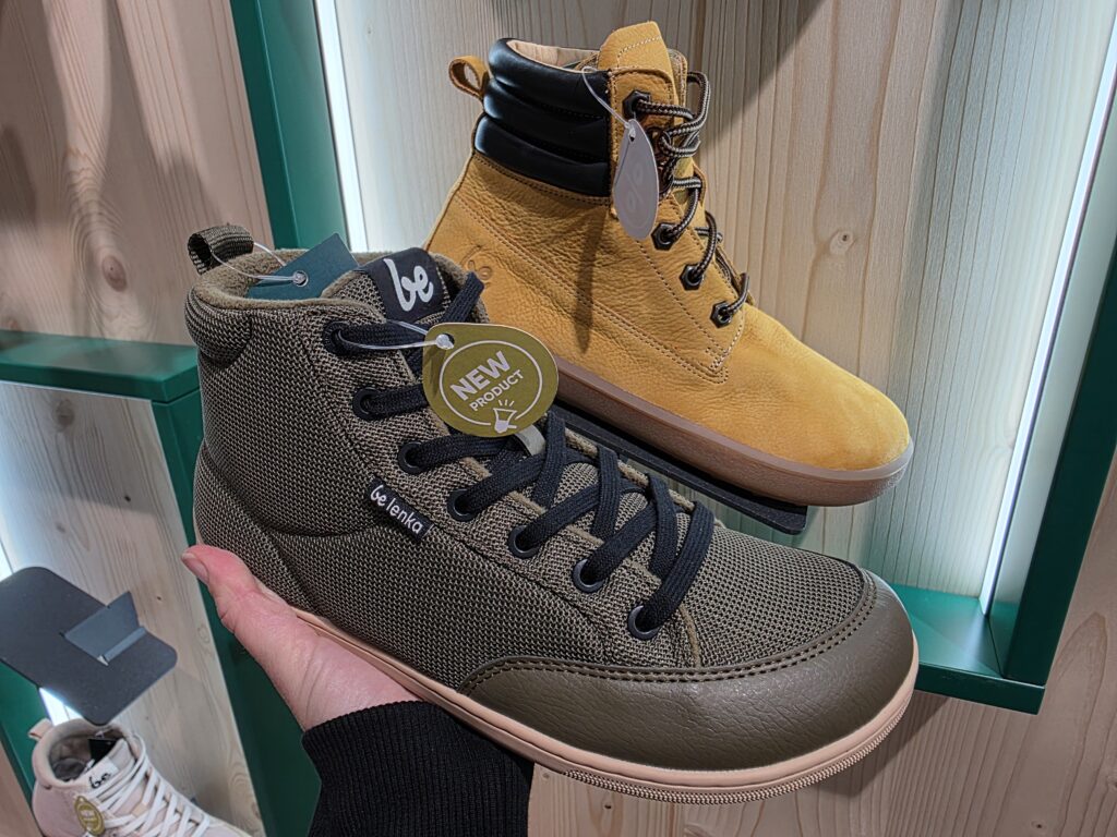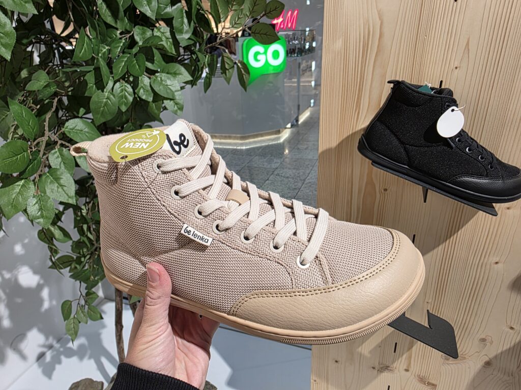 Hned po vstupu vás přivítá světlý, moderní a vzdušný prostor, který doslova láká k prozkoumání. Najdete tu široký výběr barefoot bot pro celou rodinu – od těch nejmenších po dospělé – všech barev, stylů i velikostí. Děti nevěděly, kam dřív koukat a já taky. Na výběr jsou nejnovější kolekce Be Lenka, od elegantních městských modelů až po nenápadné a pohodlné kousky na každý den. Zaujala mě i kompromisní řada Be Lenka Recovery, ideální pro ty, kteří chtějí zdravější obutí, ale ještě si netroufají na úplně barefoot styl.