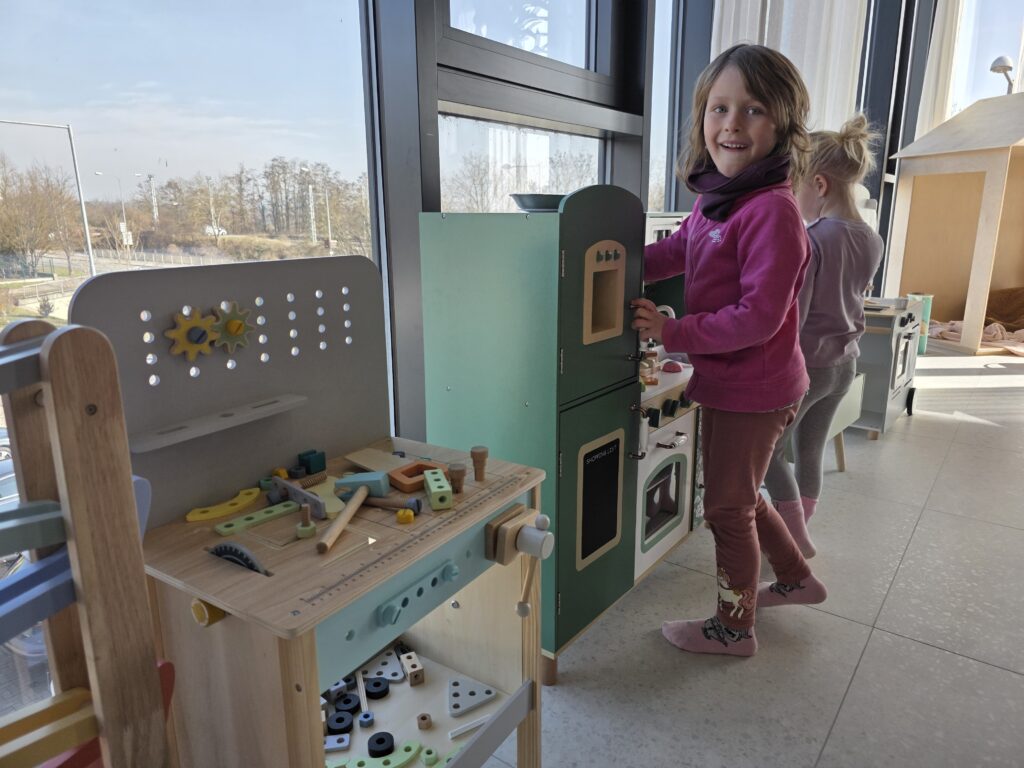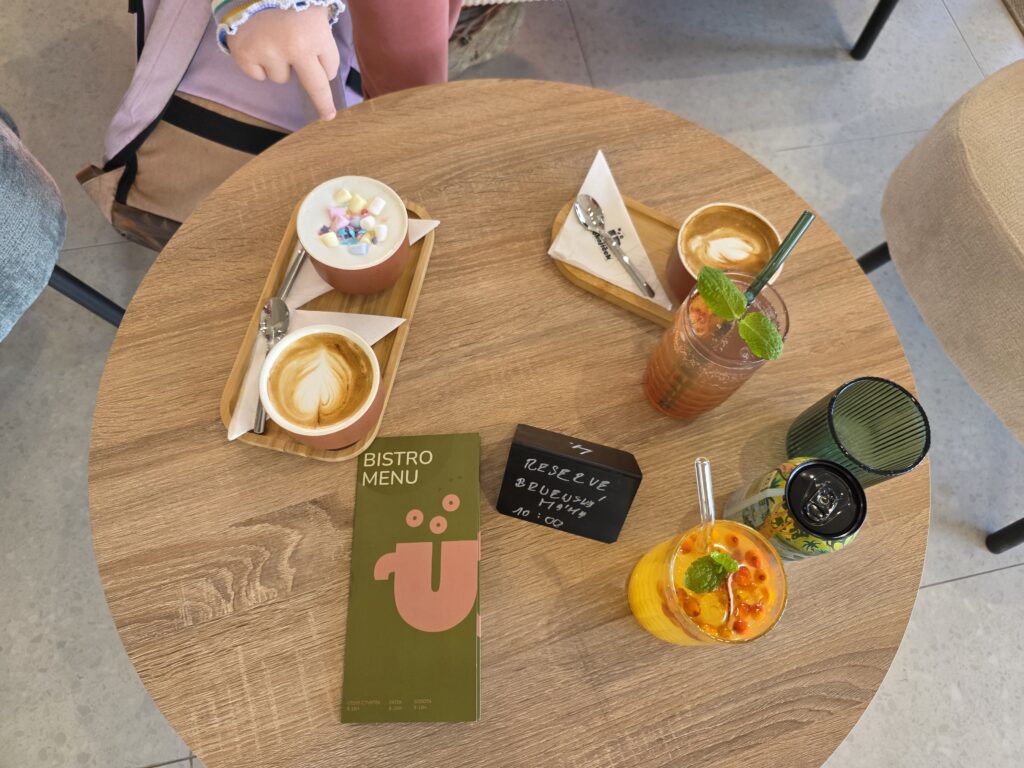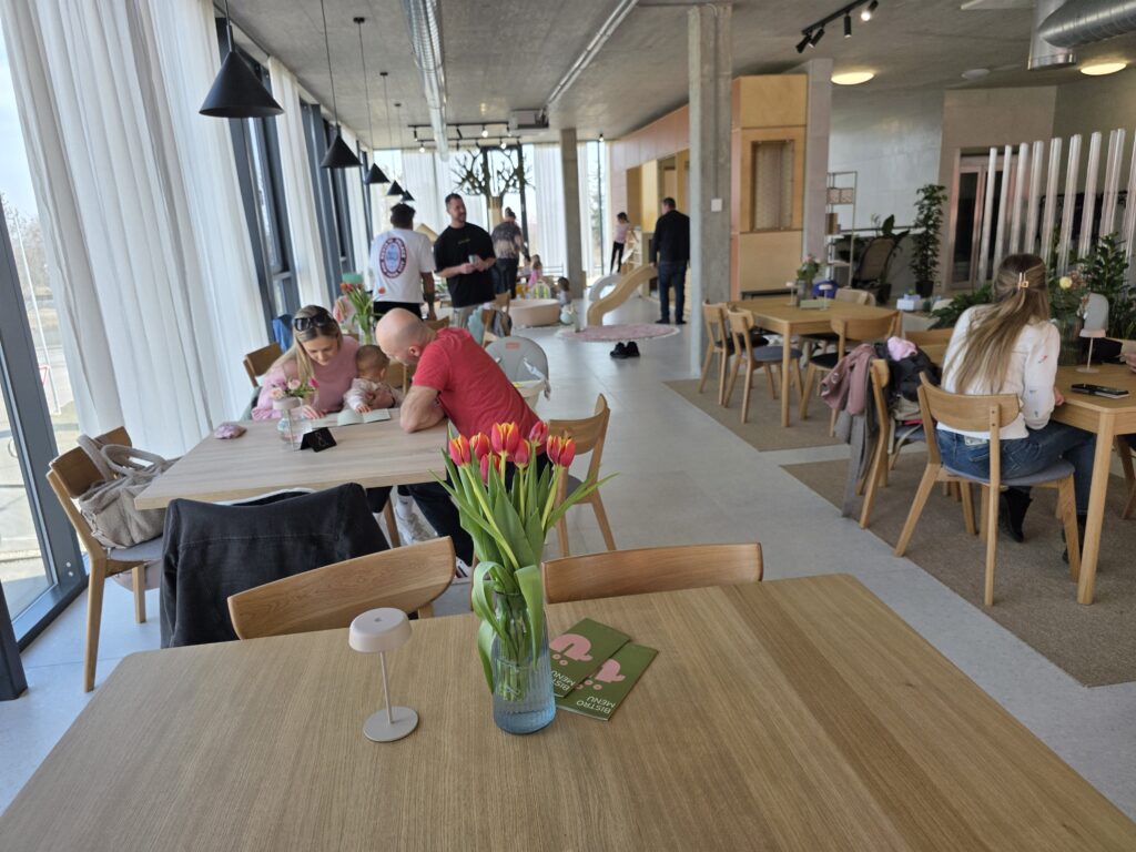 Součástí bistra je ten nejkrásnější dětský koutek, jaký si umíte představit. A co je nejlepší? Neplatí se za něj (zatím) nic. Děti si hrají, rodiče si v klidu vychutnají kávu – my si tu se ségrou daly výbornou snídani. Prostředí je tu moderní, příjemné a skvěle přizpůsobené i pro kočárky – místa je dostatek a výtah vás pohodlně doveze až do bistra. Parkování je bezproblémové. Jedinou nevýhodou jsou za mě schody, které vedou ke kavárně a zatím nejsou nijak zabezpečené, je tak potřeba prcky hlídat.