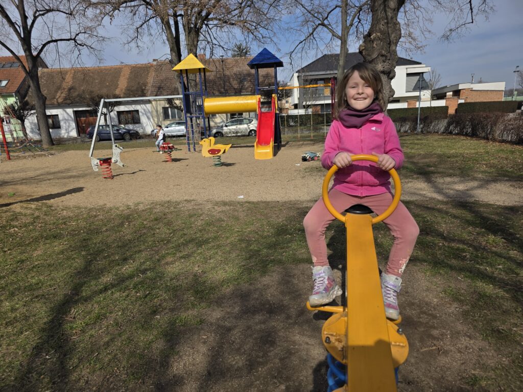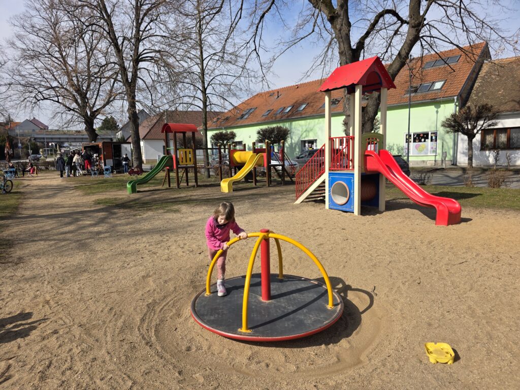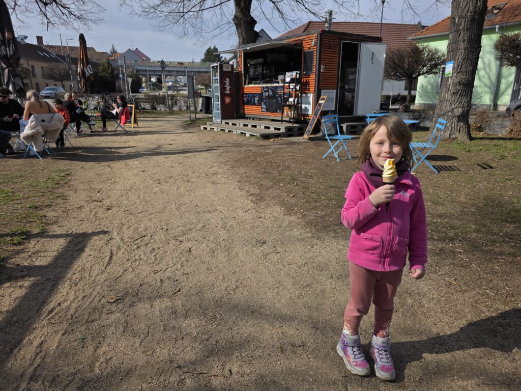 V Rajhradě jsme nevynechaly oblíbené hřiště Na Městečku u kašny. Pokud máte rádi sladké, doporučuji stánek Točená u kluků, kde mají výbornou točenou zmrzlinu i další občerstvení (najdete ho přímo na hřišti). Akorát je potřeba upozornit, že hřiště není nijak oplocené a je u silnice – opět je potřeba děti hlídat.